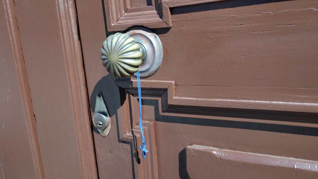 Hoy hemos salido a dar un corto paseo, en el sendero GR132, hasta un mirador mas arriba de la Iglesia de los Santos Reyes. De ida, no le doy mas importancia a la Iglesia. Esta cerrada. De regreso, le doy la vuelta, buscando los horarios. En la puerta principal, hay algo colgado. Pienso, debe ser la llave. Como en algunas iglesias armenias donde dejan la llave a disposición de los fieles. Me acerco. ¡Que sorpresa ! ¡ Es mi cruz de Tatev !