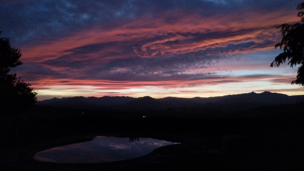 Busqué en Couchsurfing, alguien con quien pasar un par de días, mientras Michel se lanzaba a la conquista del bar más alto de África. Jean, una chama como yo, buena onda y muy emprendedora, aceptó recibirnos en su hermosa propiedad. Pasamos unos días maravillados en su casa junto a sus compañeros, dos magníficos caballos, un asno, dos perros y dos gatos. Cada atardecer fue un concierto de matices, el jefe de orquesta hizo vibrar cada color en el justo momento para nuestro deleite.
