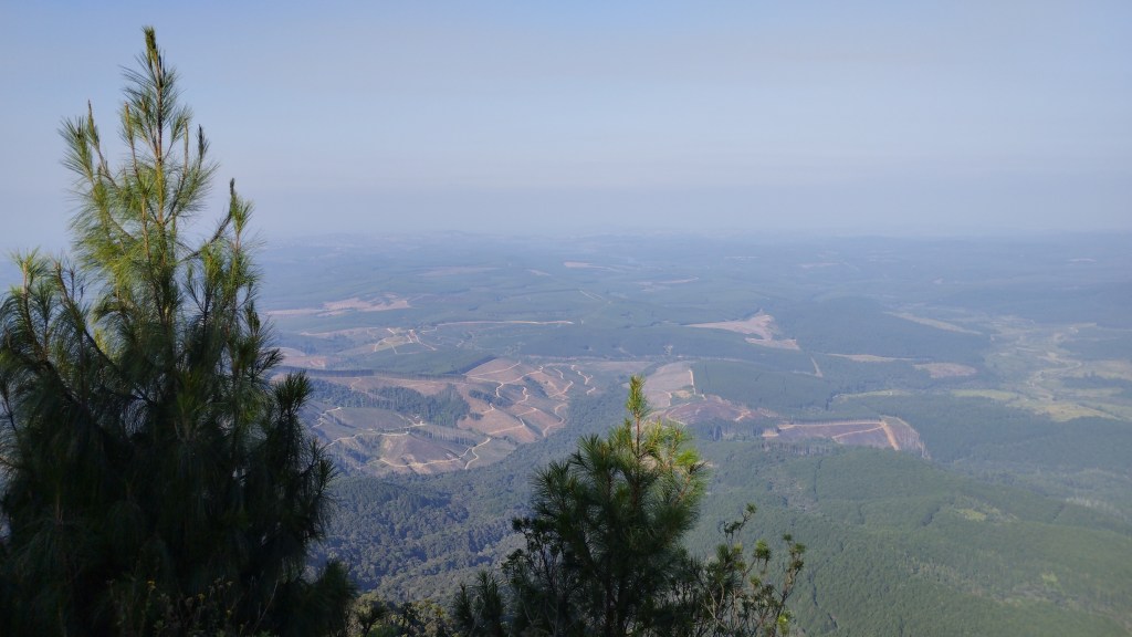 Desde la Puerta Kruger hasta Graskop se suben más de 1200 m en altitud, baja la temperatura y la ruta está tupida de enormes extensiones de pinos y eucaliptos. Atravesamos uno de los bosques más grandes del mundo plantados por el hombre.