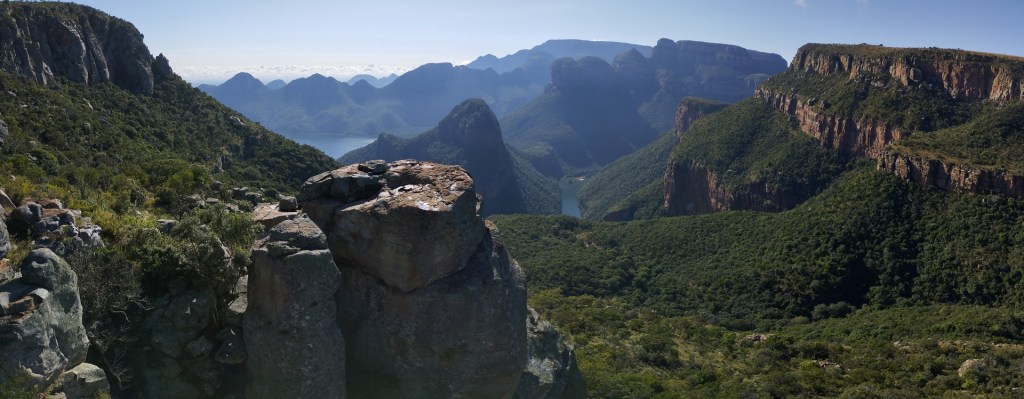 Entre dos visitas al Parque Nacional Kruger, recorrimos la Ruta Panorámica, en el corazón de la provincia de Mpumalanga con el propósito principal de explorar el Blyde River Canyon. Este cañon lo promocionan como el tercero más grande del mundo aunque en mis investigaciones no conseguí ninguna lista que lo referencie como tal. Hicimos dos paradas de tres días cada una. La primera en Graskop y la segunda en Moremela.