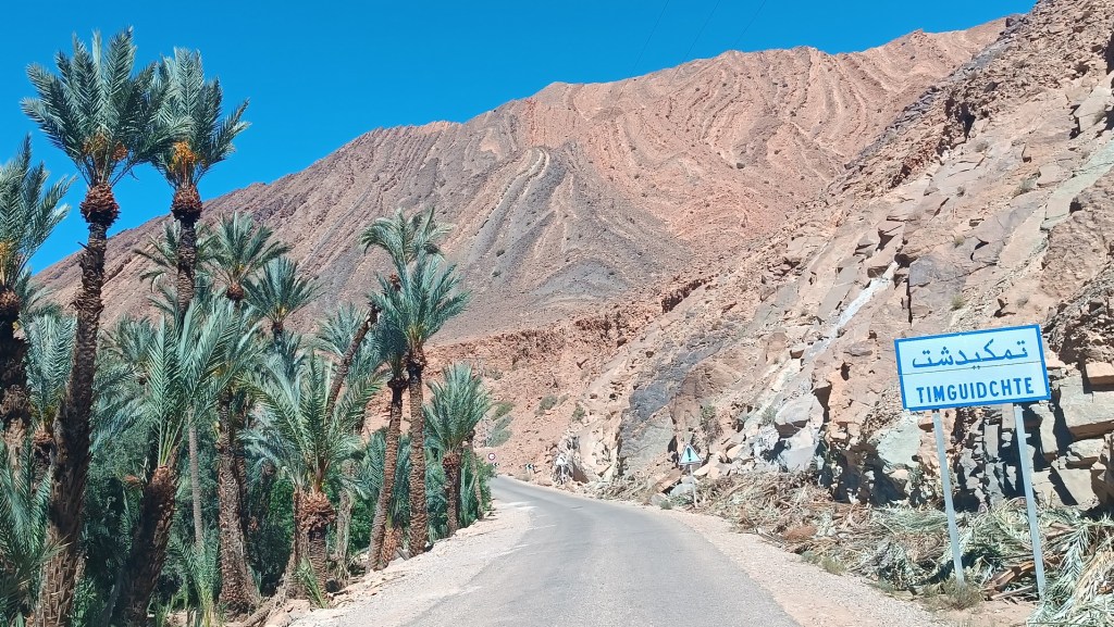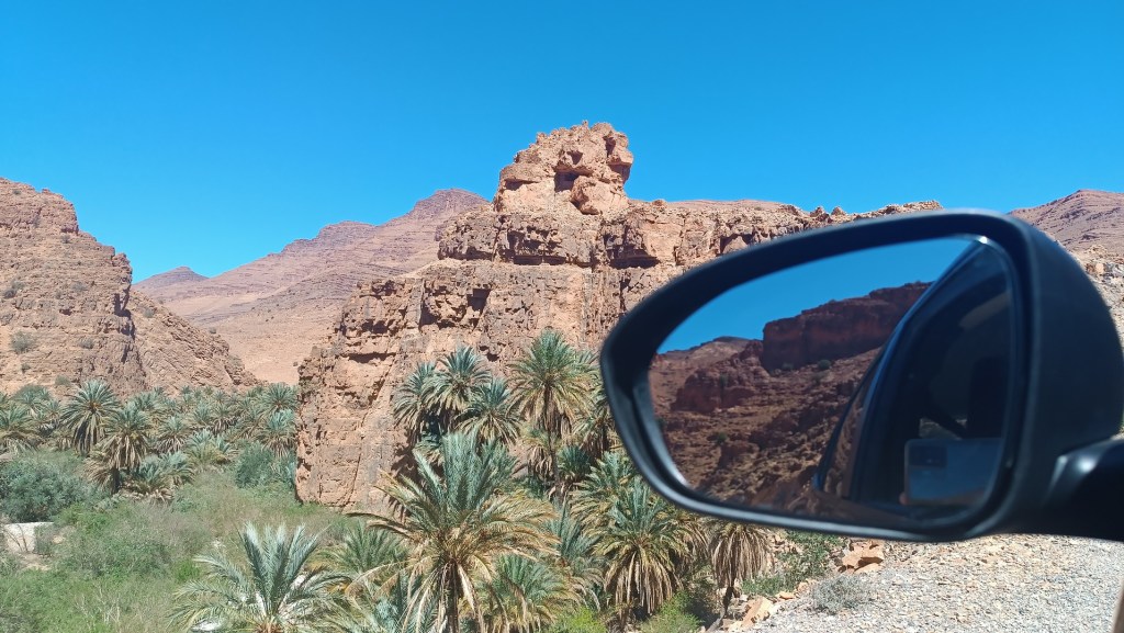 Lo habitual es regresar por el mismo camino, pero Michel Loeb va a completar el circuito pasando por el cañón de Timiguilcht, unos 20 km pista para 4×4, después de la experiencia en África del Sur, me parecía razonable pero por supuesto que iba inquieta en esa ruta literalmente desierta.