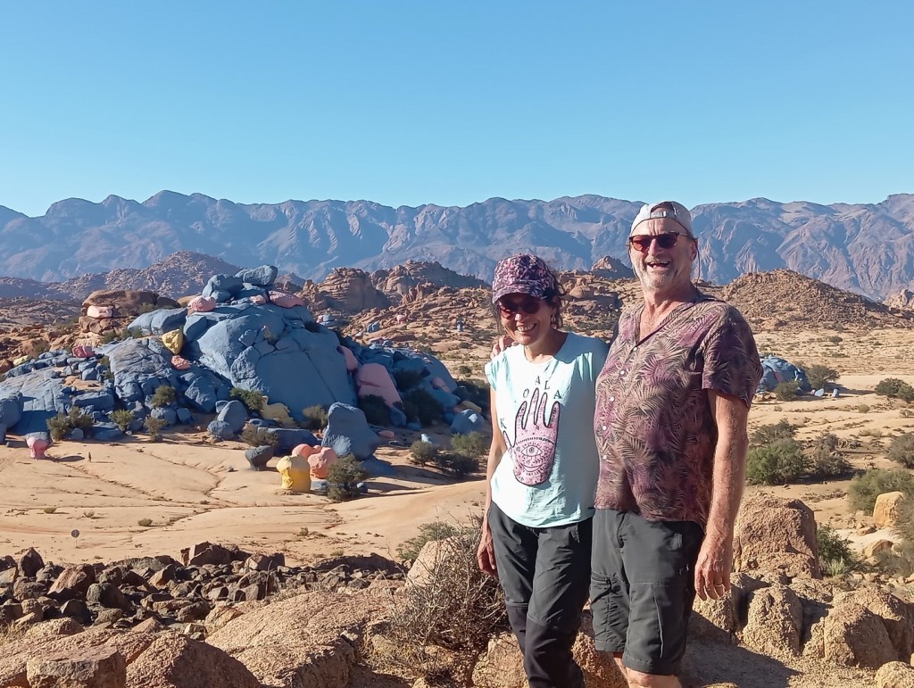 Tafraoute es uno de los sitios donde los ojos necesitan descansar de tanta belleza. Una queda encandilada. Al Ocaso, se oye el llamado a la oración, anochece y entonces salen todas las estrellas.