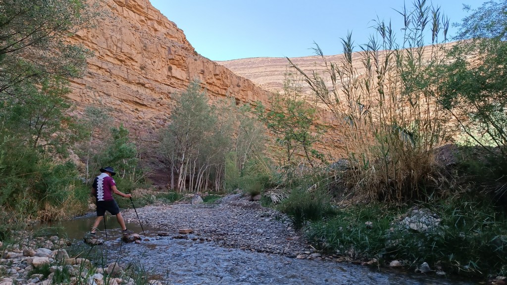 Al final del cañón, un pastor bereber nos convidó a ver sus ovejas, rechazamos la invitación. Nos despedimos de Martin y Ruth, ellos regresaron por las laderas y nosotros por el camino de los dinosaurios, el cual resultó ser muy poco interesante.
