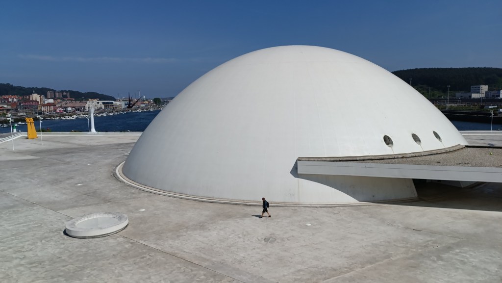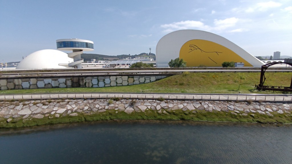 Seguimos rumbo hasta Avilés, llamada la Villa del Adelantado, en honor a su hijo más ilustre, Pedro Menéndez, corsario fundador de San Agustín, la ciudad más antigua de Estados Unidos y primer gobernador de La Florida. Nos fuimos directo al alucinante Centro Cultural Niemeyer, una garota nos vio dando vueltas maravillados y nos saludó cuando cruzamos el puente para visitar el espléndido y bien restaurado centro histórico.