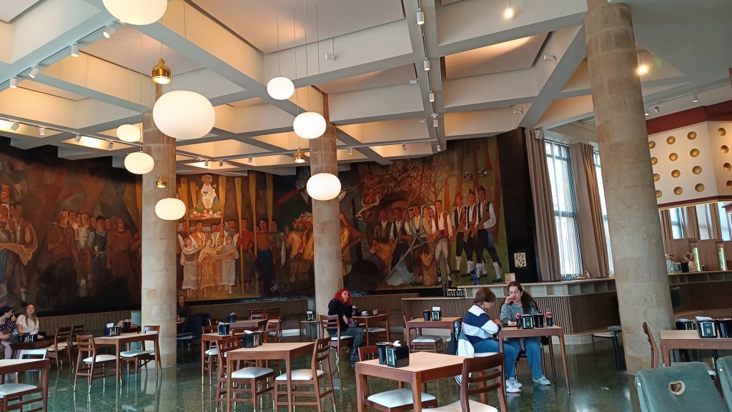 - La Laboral de Gijón, el edificio más grande de España, fue construido en la era franquista, inicialmente como orfanato y Universidad laboral. Actualmente alberga en sus vastos espacios, facultades universitarias, el conservatorio, una estación de televisión, varias oficinas administrativas y restaurantes. Dimos una vuelta por su inmenso patio, disfrutamos de la cafetería y de su Centro de Arte. La iglesia estaba en obras.