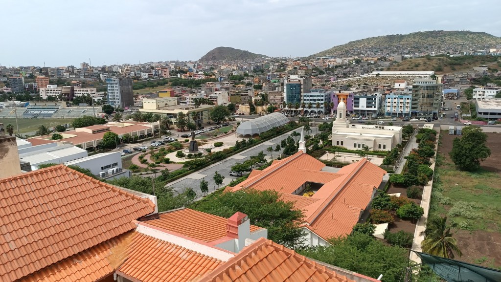 Descubrimos Praia en la mañana caminando desde nuestro aparthotel hasta el Plateau, el centro histórico. Allí visitamos el consulado de Francia para solicitar consejo sobre nuestra situación. Nos recomendaron dirigirmos a la Direção de Estrangeiros e Fronteiras. A una distancia de 3 km aproximadamente, la cual decidimos recorrer a pie, en esa caminata sentimos literalmente el sol a flor de piel. Nos resguardamos en una bodeguita, fue como parar en un oasis, nos tomamos un litro de agua y continuamos nuestro camino.
