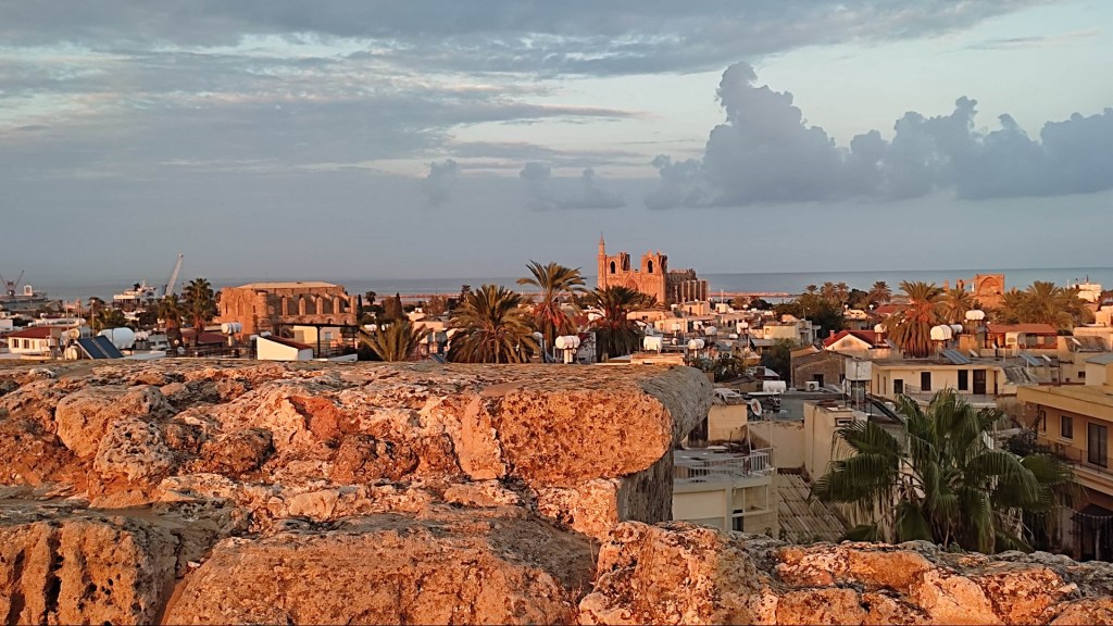 Famagusta fue la ciudad que más me impresionó. Nos alojamos en una austera residencia estudiantil intramuros. Llegamos para contemplar la magnífica puesta de sol desde las murallas, la ciudad me pareció melancólica. Hay una buena cantidad de iglesias góticas y ortodoxas abandonadas en ruinas pero con un encanto particular que testimonian de su glorioso pasado.