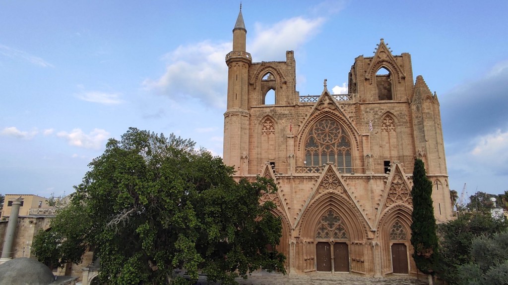 Tomamos café en frente de la Mezquita Lala Mustafa Pasha, edificada originalmente como la Catedral de San Nicolás, nos recordó mucho a la Iglesia Notre Dame de París.
