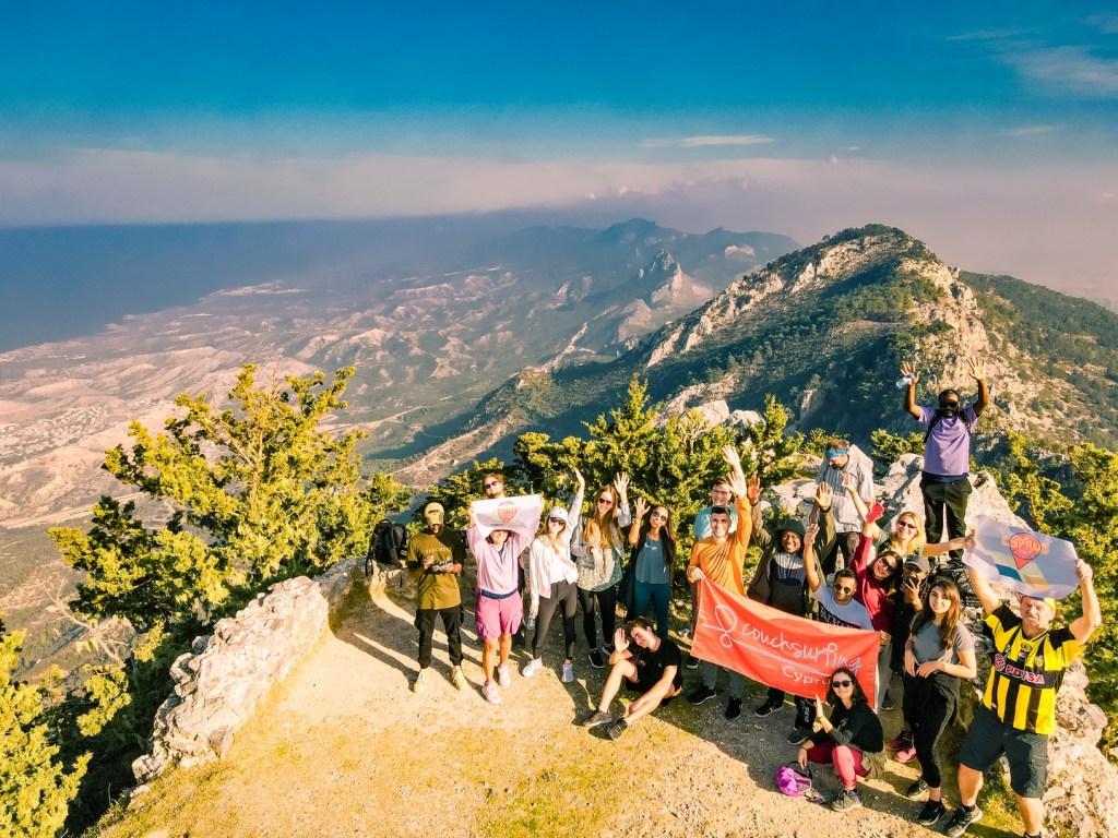 En el segundo evento hicimos una super caminata hasta el Castillo de Buffavento. Para la foto de grupo, hubo un regalo sorpresa para Michel, una pancarta con la leyenda “Chipre, país número 100 visitado”.
