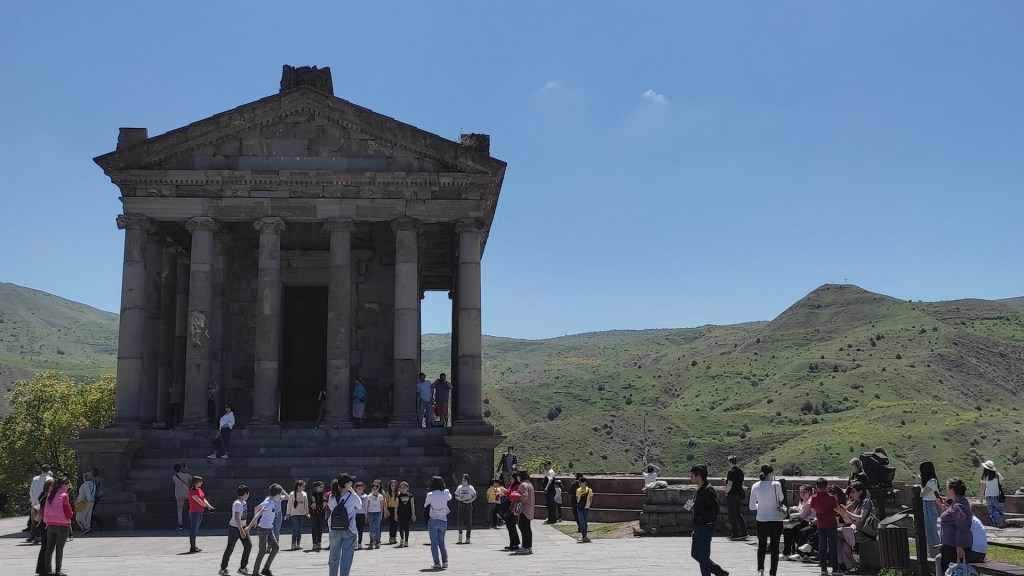 Visitamos Garni, un hermoso y bien renovado templo greco-romano, luego fuimos de vuelta hasta el cañón cercano donde hay unas formaciones peculiares, especie de teclas talladas en la piedra, este lugar se llama Sinfonía de Piedras, nos tomamos un montón de fotos.