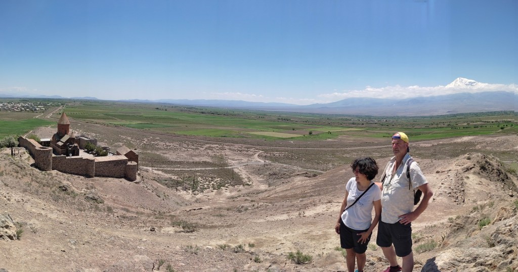 Para cenar Davit nos llevó a un exquisito restaurante de especialidades locales y al día siguiente, junto a María y George visitamos Khorp Virap, otro espléndido monasterio, en el cual Gregorio, el evangelizador de Armenia, sobrevivió 13 años encerrado en una fosa.