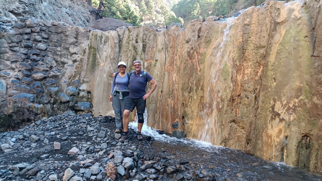 En el curso alto del Barranco de las Angustias, nos desviamos para visitar la pequeña pero fotogénica Cascada de Colores. Luego retomamos el camino hacia la salida.