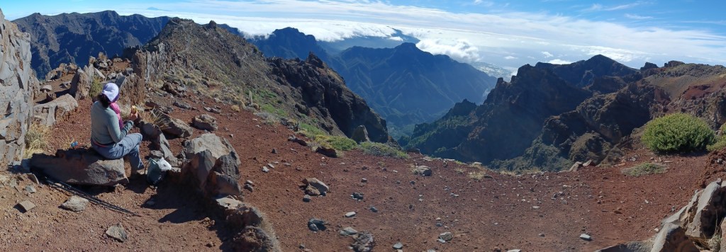 Lo mejor. Logramos conseguir un codiciado puesto de estacionamiento. En el mirador del Roque de los Muchachos disfrutamos de nuestro almuerzo con una vista époustouflante.