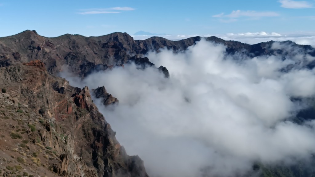 2. La etapa 2 del GR 131, sobre la cresta de la Caldera de Taburiente para deleitarnos con las espléndidas vistas panorámicas del cráter entre las nubes.