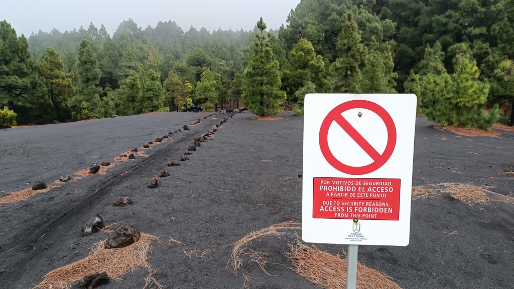 En dos ocasiones, intentamos hacer un tramo de la ruta pero la lluvia y los fuertes vientos nos lo impidieron. Una vez al inicio de la ruta, cerca del Parque Natural de Cumbre Vieja y la otra al final del camino en Fuencaliente. Adicionalmente, ahora para acceder desde la Cumbre Vieja es necesario contratar un guía por tratarse de una zona de reciente erupción.